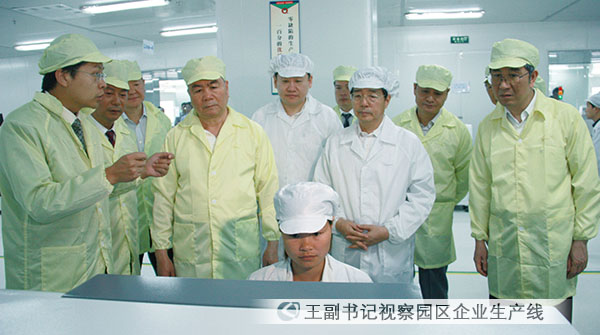 二0一一年四月二十一日,中共中央政治局委員、中央政法委副書記王樂泉在廣西壯族自治區(qū)黨委書記郭聲琨、自治區(qū)政府主席馬飆等自治區(qū)領(lǐng)導(dǎo)的陪同下,蒞臨中國電子北海產(chǎn)業(yè)園視察指導(dǎo),集團(tuán)公司聶玉春副總經(jīng)理受熊群力董事長的委托,赴北海迎接王樂泉副書記一行。